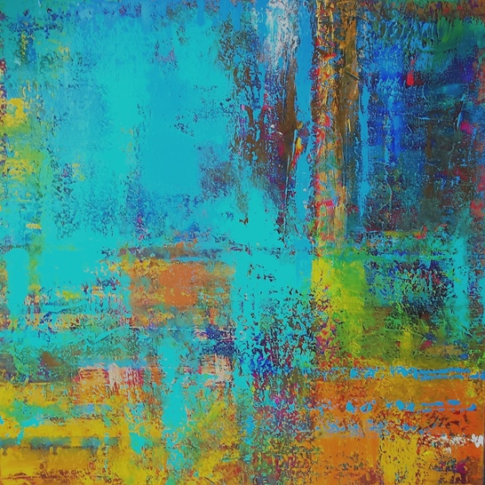 - síklapú lapradiátor, felületére absztrakt festményt nyomtattunk
