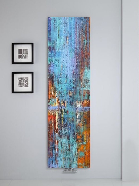 „A FŰTÉS MŰVÉSZETE” egyedi radiátorsorozatának különleges darabja a Patina art radiátor, melyet Hornyik Zoltán absztrakt festménye díszít. A látvány mellett a funkcionalitás is tökéletes: teljes értékű, prémium fűtőtest, amely rendelhető központi fűtéshez, elektromos, valamint hibrid kivitelben is.